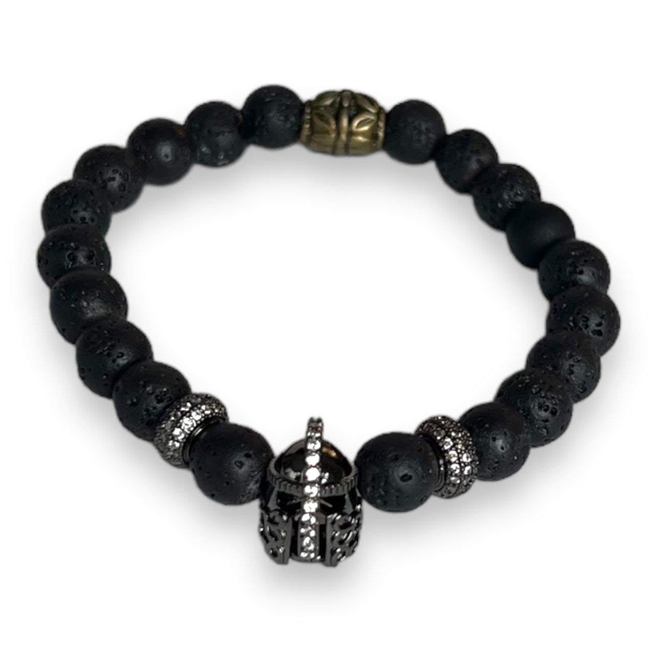 This stunning men's bracelet features black gemstones that look like pieces which came from the moon and a masculine gladiator head charm, creating a stylish and edgy accessory. It's a bold statement piece suitable for various occasions, but the charm may attract attention and start conversations.